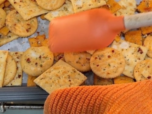 If using a bag, seal the bag but make sure to leave a bunch of air in the bag so the crackers have room to move around. Gently turn and tumble the crackers so the seasoning can distribute throughout.